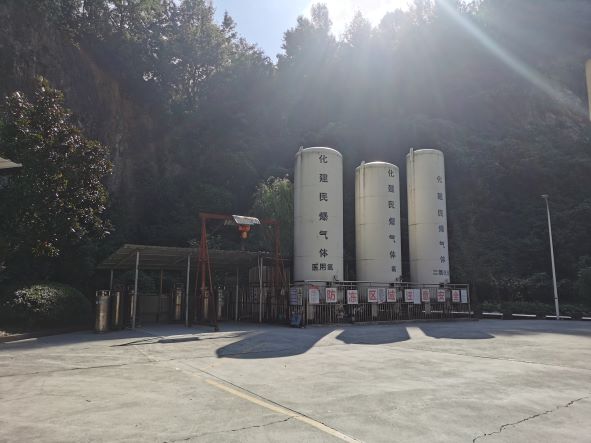 湖州市物資化建民爆有限公司下屬氣體充裝站位于湖州市西南的湖州市康山街道東山村莘家浜,氣體充裝站設(shè)置有3臺15m3低溫液體貯槽、充裝車間及特氣倉庫(原特氣車間)。現(xiàn)有員工12人。