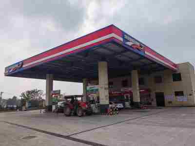 加油站設置汽油卸油和加油油氣回收系統。加油區設置加油罩棚,罩棚為輕鋼結構罩棚。罩棚下設置4臺雙油品雙槍自吸式加油機(汽油加油槍帶油氣回收);埋地油罐區設有4只埋地臥式SF雙層復合油罐(油罐均為車道罐),其中250m³汽油罐(分別為92#隔倉汽油罐1只,95#隔倉汽油罐1只),120m³汽油罐(儲存98#汽油)和130m³柴油罐(儲存0#柴油),折合油罐總容積為135m³(柴油罐容積折半計入),根據《汽車加油加氣加氫站技術標準》GB50156-2021的相關規定,該加油站為二級加油站。
