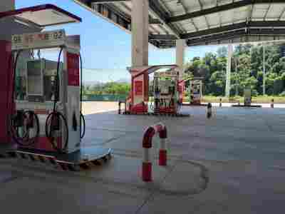 加油區設置加油罩棚,罩棚為鋼結構罩棚。罩棚下設置1臺尿素加注機、2臺單油品兩槍和4臺三油品六槍潛油泵型加油機(汽油加油槍帶油氣回收);埋地油罐區設有630m³埋地臥式SF雙層油罐(非車道罐),其中30m³汽油罐4只(分別為92#汽油罐、92#汽油罐、95#汽油罐、98#汽油罐),230m³柴油罐(0#柴油),根據《汽車加油加氣加氫站技術標準》GB50156-2021“第3.0.15條”的規定識別該站油罐總容積為150m³(柴油罐折半計入),該加油站屬于二級加油站